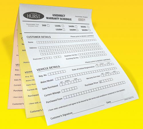 3 part NCR sets have 3 sheets glued together (its not rocket science!) and are available in a variety of sizes and a choice of five paper colours, white, pink, blue, green or yellow. Theyre printed in one or two spot colours on the front and available with either a blank reverse or printed in one colour on the reverse the perfect place to put your terms and conditions!
