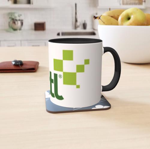 Choose from a basic white mug or add a bit of colour and match your brand with our 2 tone mugs feature a coloured handle and rim to create a feature piece.