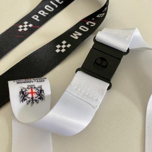 Each lanyard comes with a safety break and dog clip as standard and they are available in 3 widths;
