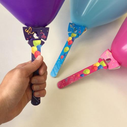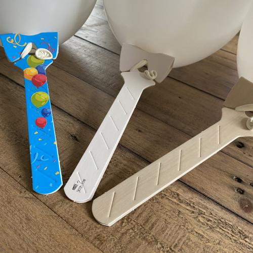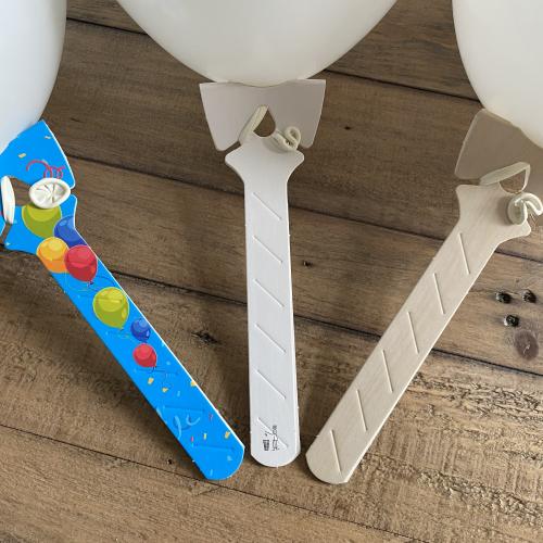 Balloons on white cardboard holders