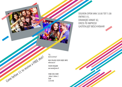 Populaire zoektermen: Funky, Modern, Vriendelijk, Abstract, Koel, Plezier, Limoen Geel, Lichtblauw, Feestelijk, Volzwart