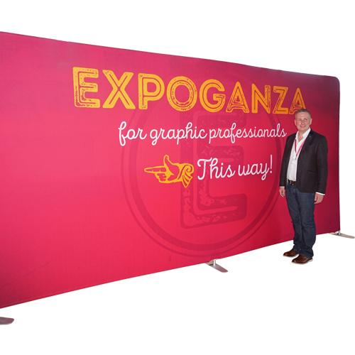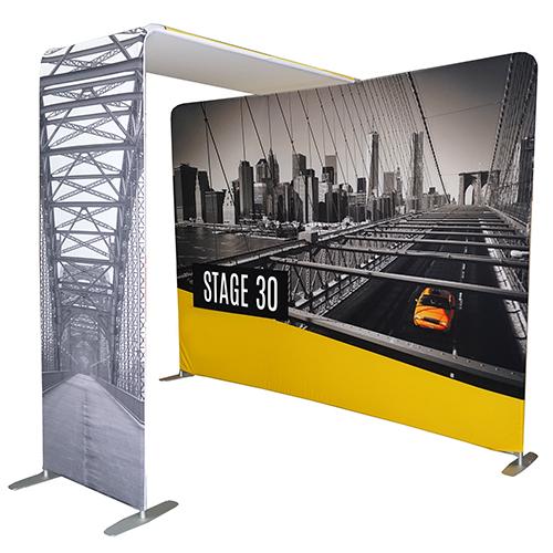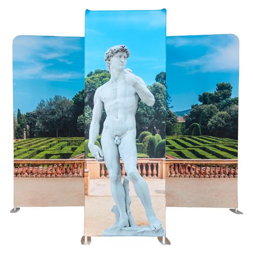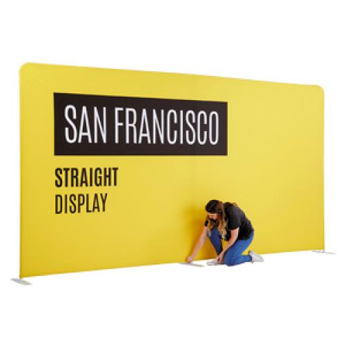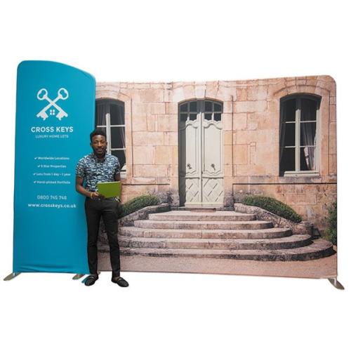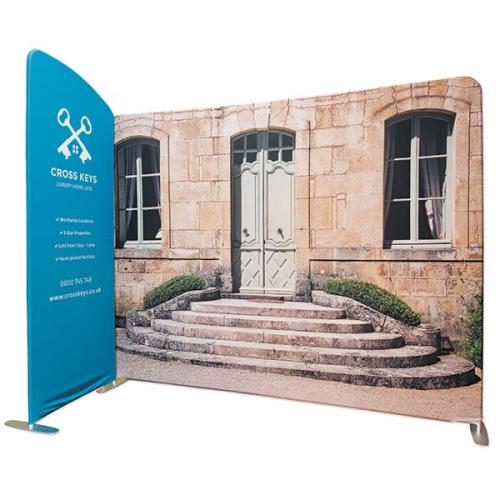 Our range of straight backdrops are made from a strong, lightweight aluminium frame and a fabric cover, which can be printed on both sides. They are perfect for defining an exhibition area or dividing wide open office spaces.