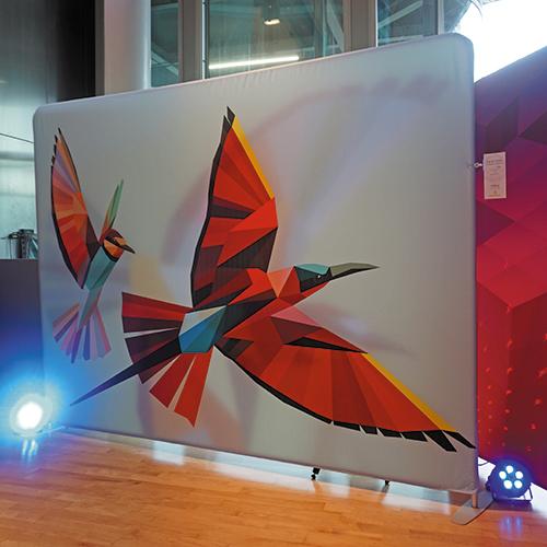 The fabric cover is one continuous graphic, which eliminates the problem of visible join lines commonly encountered on traditional multi-panel exhibition backdrops. They make setting up for exhibitions much easier, and the results are more visually appealing.