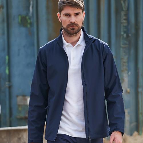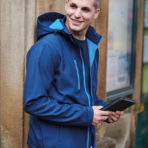 3-laags softshell jack met capuchon aan de achterkant