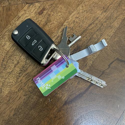 Full colour bedrukt aan beide zijden en voorzien van een gat. Sleutelhangers kunnen worden gepersonaliseerd met individuele namen, nummers, barcodes en handtekeningen. Selecteer eenvoudig de optionele extra's bij het afrekenen.