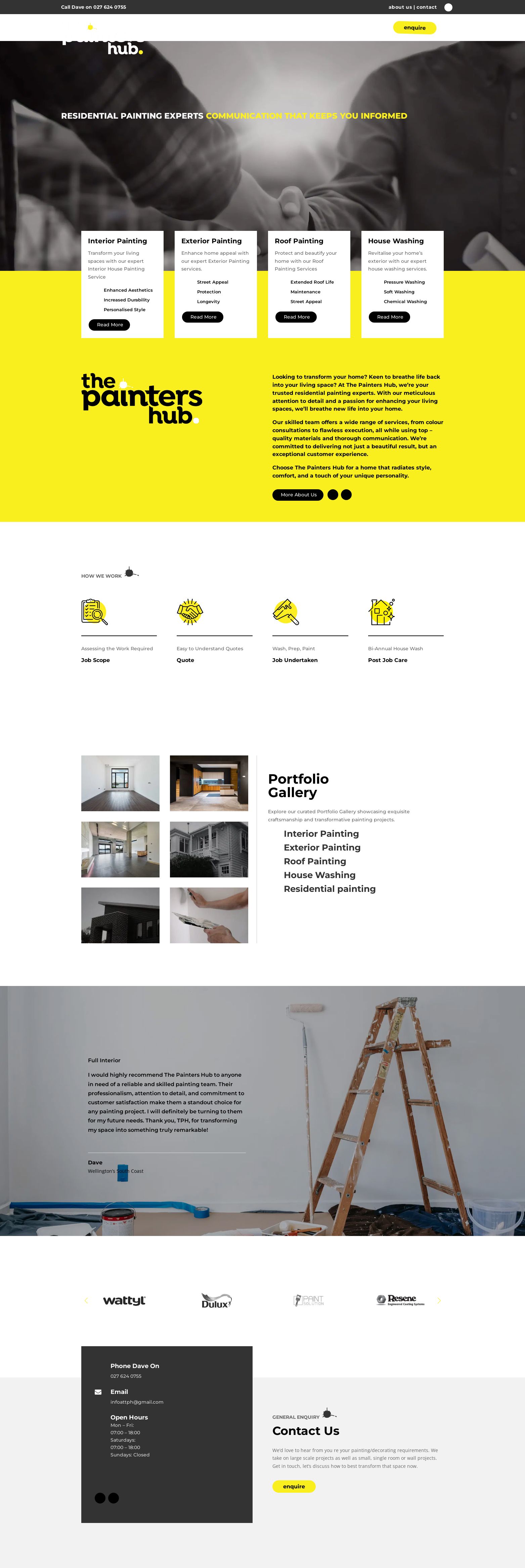 Modern website for The Painters Hub that reflects their professionalism and attention to detail. The site features a fully custom navigation pop-out with dynamic menu elements, offering a smooth and intuitive user experience across devices.