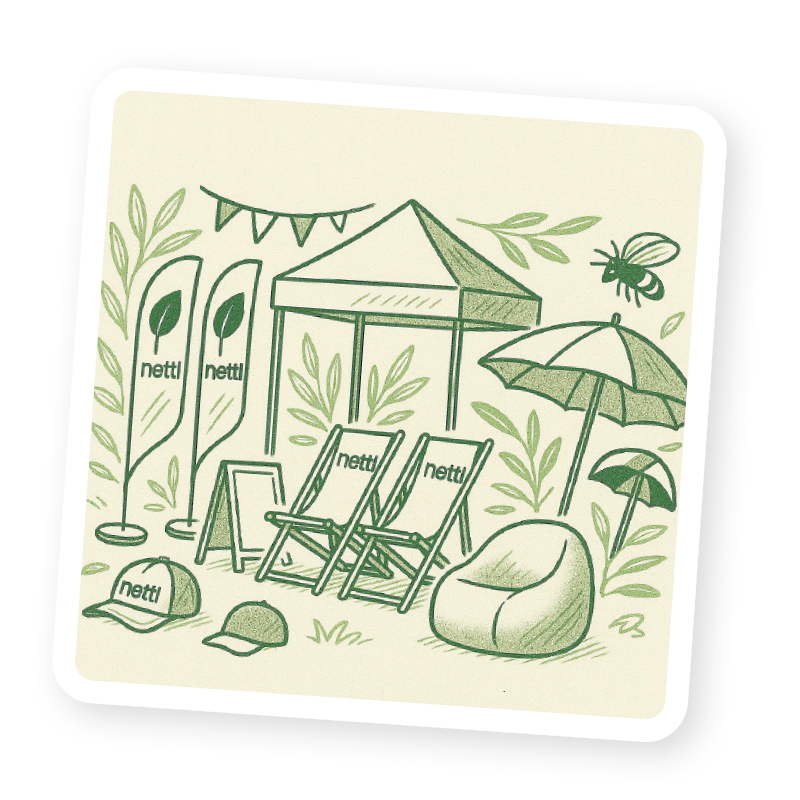 Think café barriers, branded beanbags, A boards, or even floor vinyls. It helps define your space and turns a blank bit of pavement into part of your brand.