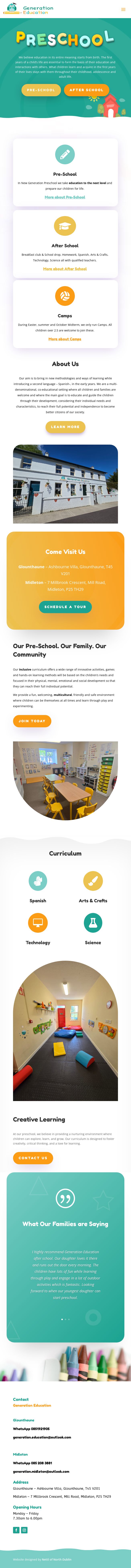 Generation Education preschool’s website provides a welcoming and informative platform for parents, guardians, and prospective students. The site reflects the preschool's nurturing environment and educational philosophy, showcasing diverse programs and dedicated staff. Through vibrant colours, playful typography, and engaging imagery, it creates an inviting atmosphere that mirrors the preschool's focus on fostering curiosity and growth. The website includes detailed descriptions of age-specific programs that balance academic learning with play-based activities. Essential information about the programmes offered and admissions process is also provided, making it a valuable resource for families considering enrolment.