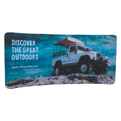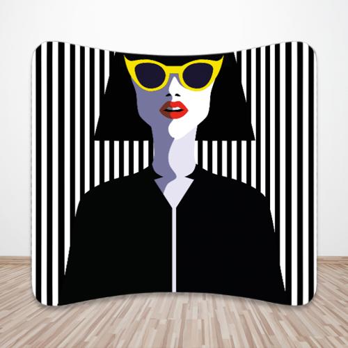 Our range of curved backdrops are made from a strong, lightweight, aluminium frame and a fabric cover, which can be printed on both sides. They are perfect for defining an exhibition area or dividing wide open office spaces.
