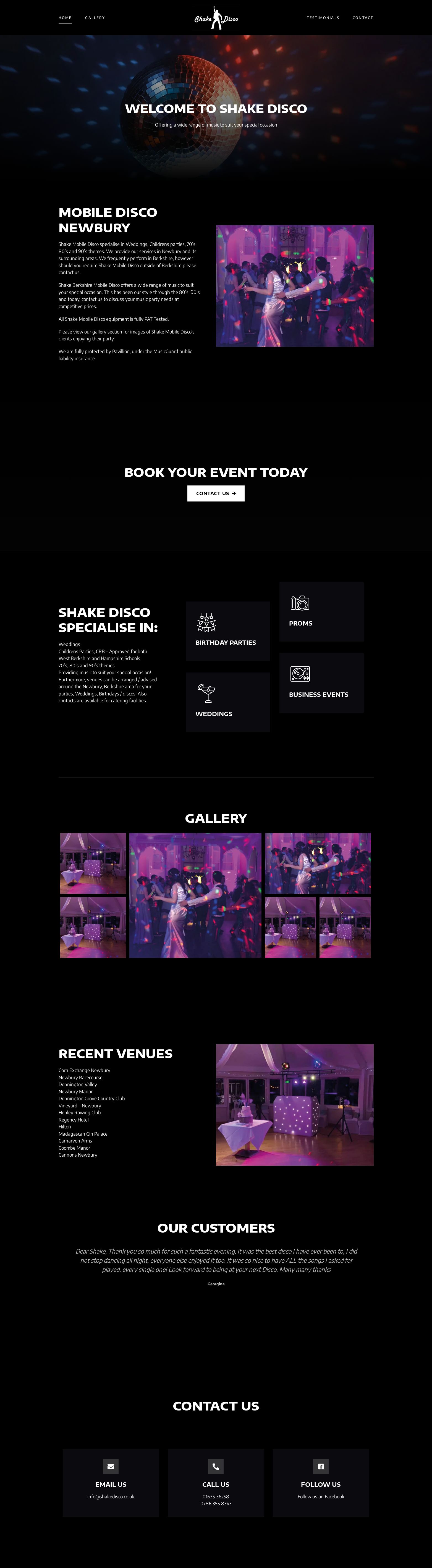 Shake Disco's one-page website is a vibrant showcase of entertainment and excitement, meticulously crafted to capture the essence of the disco experience. With a sleek and dynamic design, the site immerses visitors in a world of pulsating beats and dazzling lights. Intuitive scrolling navigation guides users through various sections, including event details, DJ profiles, and booking information, all seamlessly integrated into a single page. The design ensures accessibility across devices, from desktops to mobile phones, with responsive elements optimising the user experience. Behind the scenes, efficient coding and optimisation techniques ensure fast loading times, allowing visitors to quickly access the groove. Shake Disco's website isn't just a digital platform—it's a groovy gateway to unforgettable entertainment experiences.
