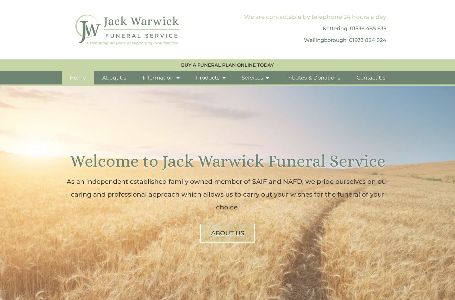 Jack Warwick Funeral Services Ltd website by Nettl