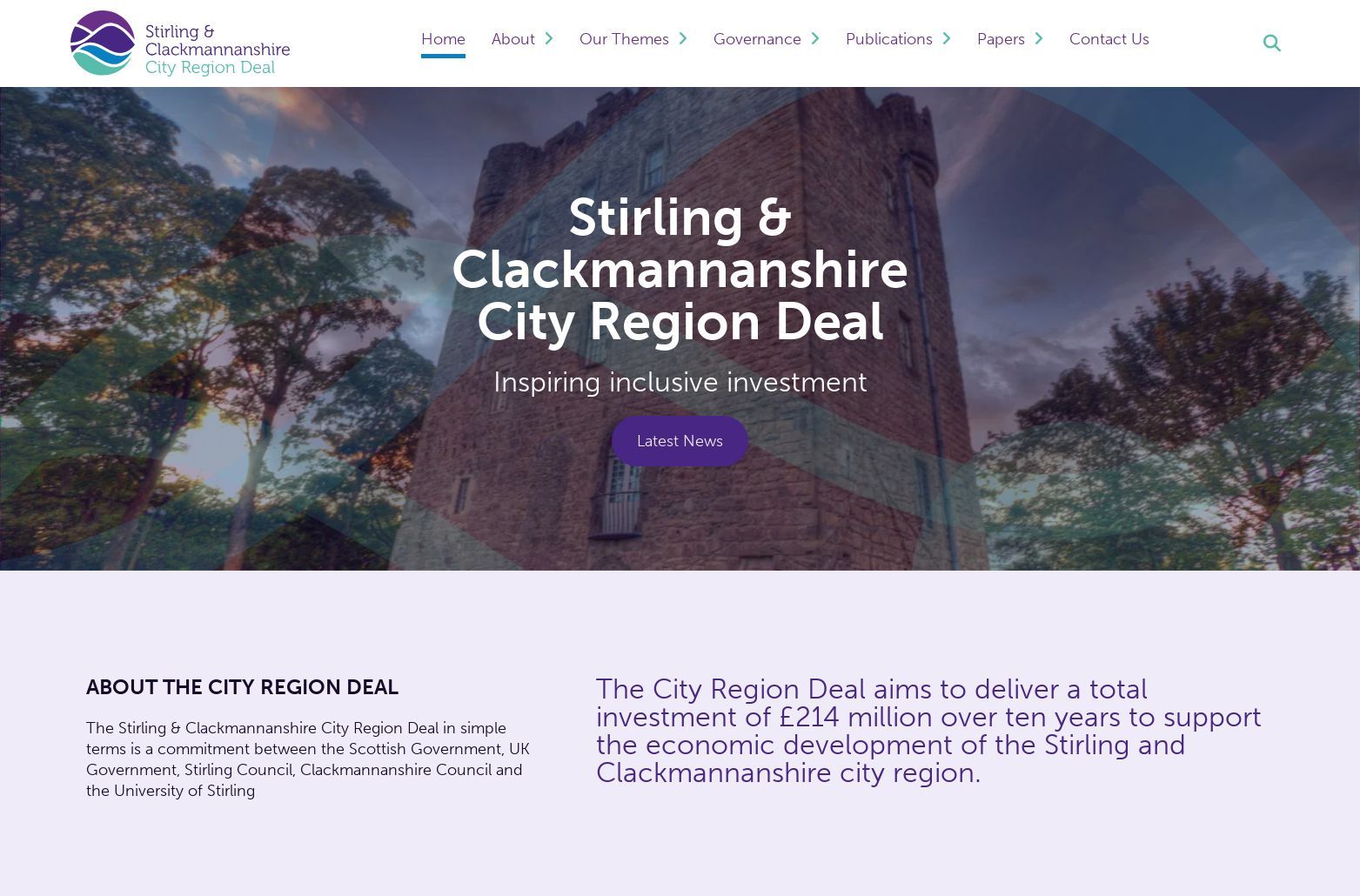 The Stirling & Clackmannanshire City Region Deal website, built on WordPress, is a platform detailing a £214 million, ten-year investment initiative by the Scottish Government, UK Government, Stirling Council, Clackmannanshire Council, and the University of Stirling. The project aims to stimulate economic development in the Stirling and Clackmannanshire city region. The deal revolves around six themes: innovation, digital, culture, heritage & tourism, skills & inclusion, transport, connectivity & low carbon, and infrastructure. The site provides updates on the progress of the deal, information about partners, and specific projects under each theme.